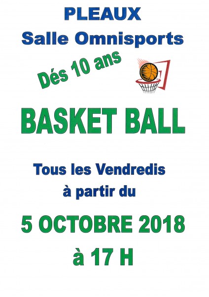 BASKET BALL : Tous les vendredis à 17 heures à la salle Omnisport. A partir de 10 ans. Reprise le vendredi 5 octobre 2018.