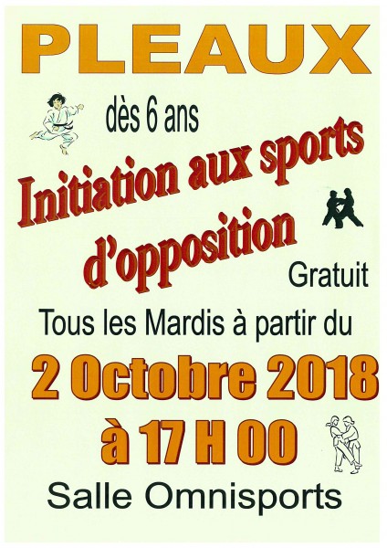 JUDO : Tous les mardis (2ou 3 groupes) à 17 heures à la salle Omnisport. Pour les 6 ans et plus. Reprise le mardi 2 octobre 2018.