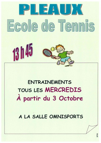 TENNIS : Tous les mercredis (3 groupes) de 13h45 à 15h45 à la salle Omnisport. Reprise le mercredi 3 octobre 2018.