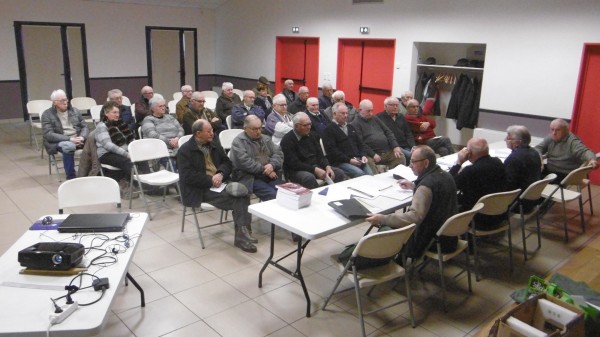 Sur grand écran, le trésorier Gaston Bornes, présenta les comptes de l’année, en équilibre, grâce aux subventions des communes - que nous remercions - la proposition des calendriers, le concours de belote et les dons : publicités, sympathisants. La carte d’adhérent assure l’abonnement au journal national et départemental, 4 euros étant ristournés au Comité. Cette bonne gestion permet de faire face à des obligations qui, hélas ! progresseront inéluctablement dans l’avenir : frais d’obsèques et plaques funéraires - ainsi que les aides sociales. Sont ainsi alimentés : les fonds départementaux de solidarité (FDS) : 200 €, de visite aux malades hospitalisés (VMH) : 400 €, des veuves : 150€, le journal départemental offert à tous les adhérents, ainsi que les manifestations et les aides particulières.