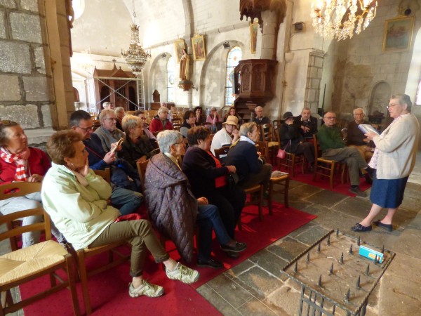 Site d'exception par ses vestiges architecturaux et par son histoire, Marinette Wojtowicki nous a permis de traversé le temps et de découvrir la richesse de son village. Après avoir visité son église (ancienne prieurale), nous nous sommes remémorés sur la place principale, l'existence de l'ancienne fontaine peinte au XIXème s. par des artistes aurillacois, avant de nous rendre au calvaire (face au site de Notre Dame du Rocher) - un point de vue exceptionnel qui n'a pas livré encore tous ses secrets. La visite du village a permis à chacun d'admirer ses demeures moyenâgeuses et ses nombreux remplois architecturaux issus du château haut. Ainsi, fenêtres à meneaux, portes en arcs brisés de toute beauté, ouvertures renaissance… jalonnaient notre passage. En arpentant le dit barry de la Reyno chacun a pu flâner parmi les arbres et bosquets tout juste en fleurs avant de découvrir l'emplacement du château haut dont les murs témoignent sans nul doute aucun de son emplacement au point le plus haut du village. Enfin, la découverte de la chapelle Notre Dame du Rocher, ancienne chapelle castrale du site où étaient implantés plusieurs châteaux et maisons-fortes, permit d'appréhender un site enchanteur pour les amoureux de nature et du patrimoine. Après avoir décrypté ce site, un petit verre de l'amitié a été offert au groupe.