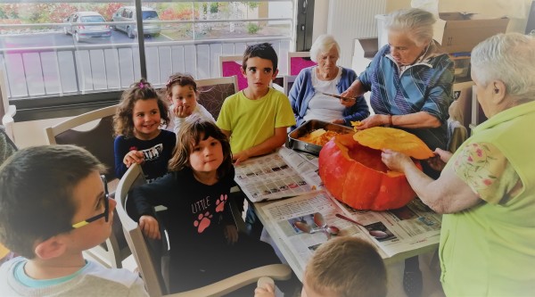 cucurbitacées que les enfants ont apportées à la maison de retraite. Sur place, Eve,