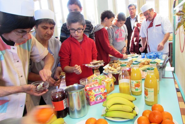 Une action inédite au collège Raymond Cortat : un petit-déjeuner pédagogique vient d’être servi aux élèves de la classe de 6ème. Souhaitée par le chef d’établissement, Robert Scheuer, mise en oeuvre par la gestionnaire, Sandrine Marty, et l’infirmière scolaire, Katy Guillet, et réalisée par les agents, sous la houlette du chef de cuisine, Serge Lavergne, cette opération s’inscrit dans la volonté de la communauté éducative de l’établissement de sensibiliser les collégiens aux questions d’hygiène et d’équilibre alimentaires. En amont de l’opération, les élèves avaient travaillé sur un questionnaire, puis en aval, l’infirmière est intervenue en classe pour dresser le bilan du questionnaire et du petit-déjeuner, prodiguant conseils et prescriptions, et insistant tout particulièrement sur le caractère complémentaire des différentes catégories alimentaires, dont la réunion constitue le petit-déjeuner le mieux à même de donner force et énergie pour bien étudier jusqu’au repas de midi.