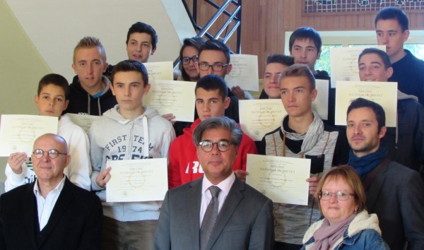 Le collège Raymond Cortat vient d’inviter ses anciens élèves de la classe de 3ème à retirer leur diplôme national du brevet à l’occasion d’une cérémonie officielle de remise du document validant leur acquisition des connaissances et des compétences exigées à la fin des quatre années de scolarité en collège. En juin dernier, l’établissement a connu cent pour cent de réussite. Au cours de son allocution, le principal Robert Scheuer non seulement a souligné le caractère solennel de la manifestation mais encore a encouragé chacun des titulaires du DNB à réussir dans la voie qu’il a choisie. Remerciant ses collègues présents de la qualité de leur enseignement, il a exhorté ses anciens élèves à toujours viser l’excellence et leur a souhaité pleine et entière réussite dans la réalisation de leur projet de vie professionnelle et personnelle.