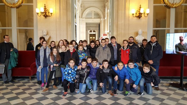 Les élèves en ont profité le lendemain pour parfaire leur culture démocratique en visitant l’enceinte du palais Bourbon, siège de l’Assemblée nationale. Ils ont admiré, grâce à l’invitation de M. J.-Y. Bony, député de la 2e circonscription du Cantal, diverses parties du bâtiment : la Galerie des Fêtes, la salle des Pas Perdus ou encore l’Hémicycle. Sur le chemin du retour, les élèves et leurs accompagnateurs ont fait une rencontre fortuite pour un mercredi matin (absence de débats) : le Premier ministre Edouard Philippe en personne !