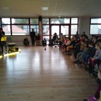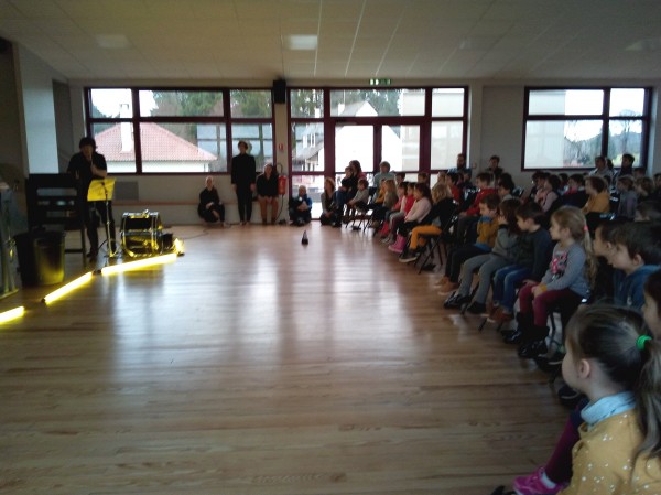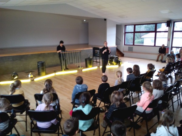 Les élèves de l’école publique de Pleaux sont allés mardi 24 janvier à Ally pour assister à un spectacle de la compagnie « Le pied en dedans : Y ». Ce fut l'occasion de voir "Y" jouer, s'ennuyer, se chamailler, le tout rythmé par des percussions "maison". A la fin du spectacle, tous les enfants ont pu bouger en rythme avec une balle en mousse en main avant de la jeter sur scène ! Ce spectacle a été organisé et offert par la communauté de communes du pays de Salers.