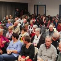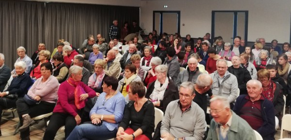 Une salle bien remplie par environ 120 personnes, revécut l’horreur des combats, en particulier dans les tranchées, les tragédies vécues par les « poilus », avec aussi leurs grands moments de fraternité, l’effort de guerre et les souffrances de tout un peuple. Mais à celle qui devait être la « der des der », succéda une nouvelle tragédie, marquée par la division idéologique de leurs enfants mais aussi par la solidarité des Alliés du Monde Libre. Enfin le constat que l’oubli et l’indifférence s’installent peu à peu maintenant.