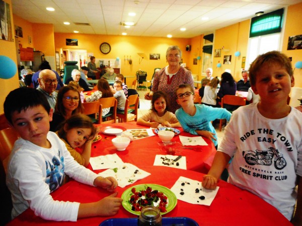 Sur la thématique « Saveurs d’automne dans vos menus », les cuisiniers de la maison de retraite ont proposé tout au long cette semaine, des repas mettant à l’honneur les produits de saison. En parallèle, plusieurs activités ont rythmé cette semaine des plus attrayantes ! Les aînés ont eu le plaisir d’accueillir les enfants de l’Ecole Saint-Joseph pour un atelier spécial « sculpture sur fruits et légumes ». Ainsi, sous l’œil avisé d’un jury composé par les résidents ; les élèves ont pu développer leur créativité en sculptant des bonhommes de neige, sapins et autres petits animaux. Devant l’enthousiasme, la persévérance et le talent de chacun, le prix de la sculpture la plus originale a été décernée à l’unanimité à l’ensemble de l’école ! En récompense, un magnifique gâteau de bonbons confectionné la veille par les résidents. Activité « remue-méninges » sur le potager et lecture de conte sur la fabrication de la farine et du pain autrefois étaient aussi de la partie ! Il y en avait pour tous les goûts !